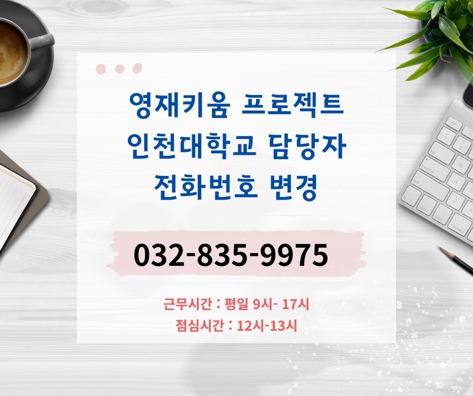 인천대학교 영재키움 프로젝트 전화번호 변경