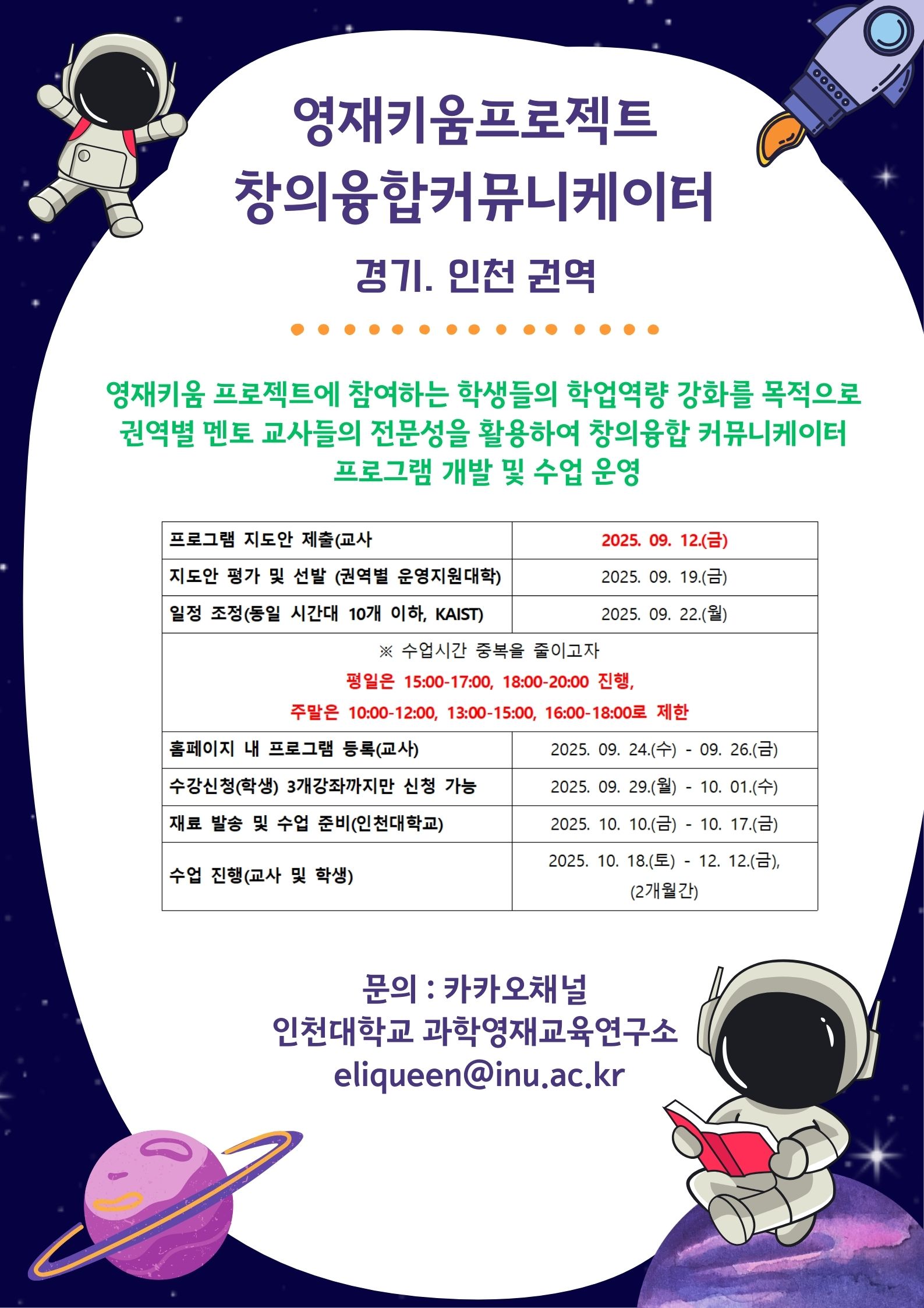 인천대학교 영재키움 프로젝트 전화번호 변경