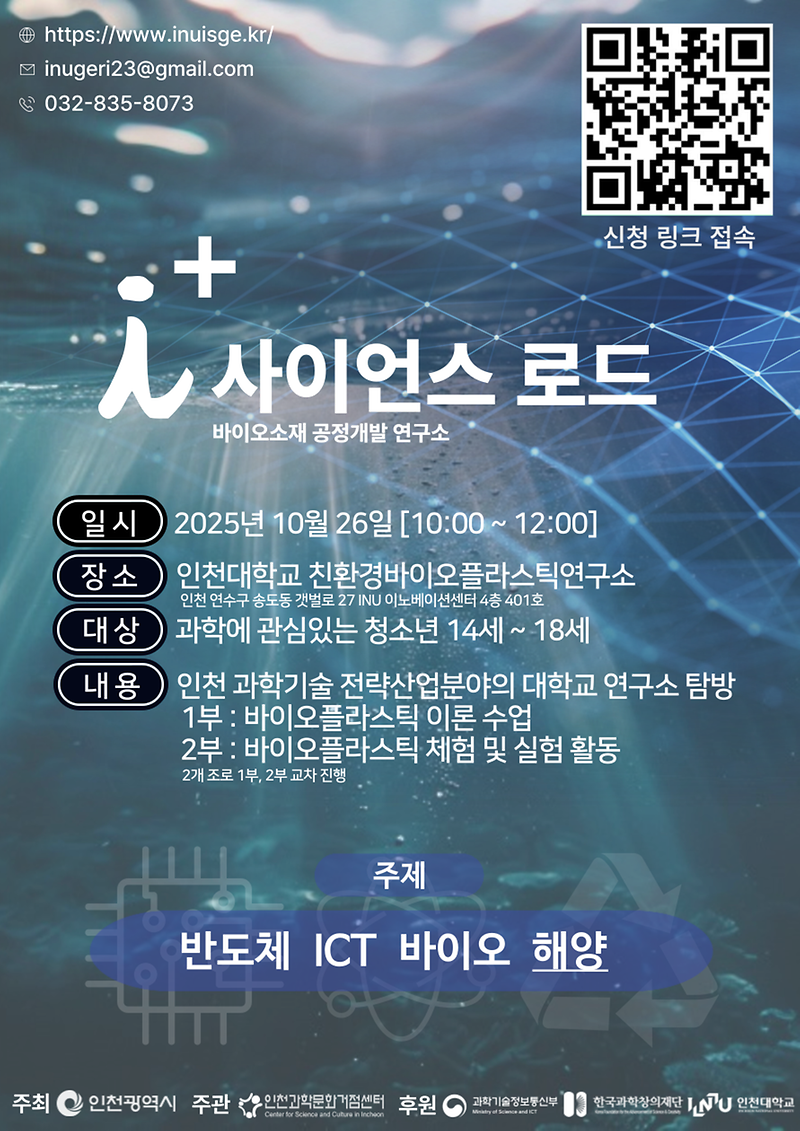 신청하기-[i+사이언스 로드] 인천대학교 탐방프로그램 - 친환경바이오플라스틱 연구소 [해양] | 인천대학교과학영재교육연구소>인천과학문화거점센터