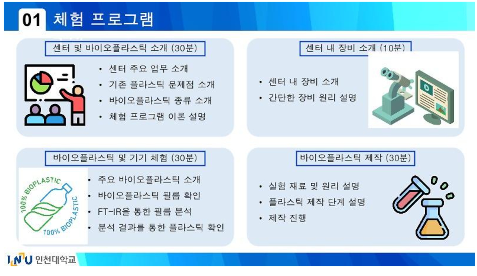 | [중학생 이상] 인천대학교 친환경 바이오플라스틱 연구소 탐방 (10/26(일) 10:00-12:00) |