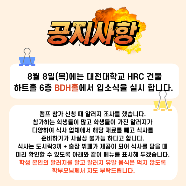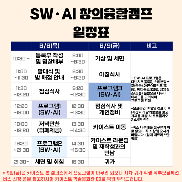 ★필독★2024년 SW•AI 창의융합캠프 캠프 버스 집결지 및 알러지 등 공지사항