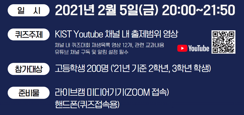 [KIST 고교생 온라인 퀴즈대회] 온라인으로 KIST와 함께 과학퀴즈 풀자!