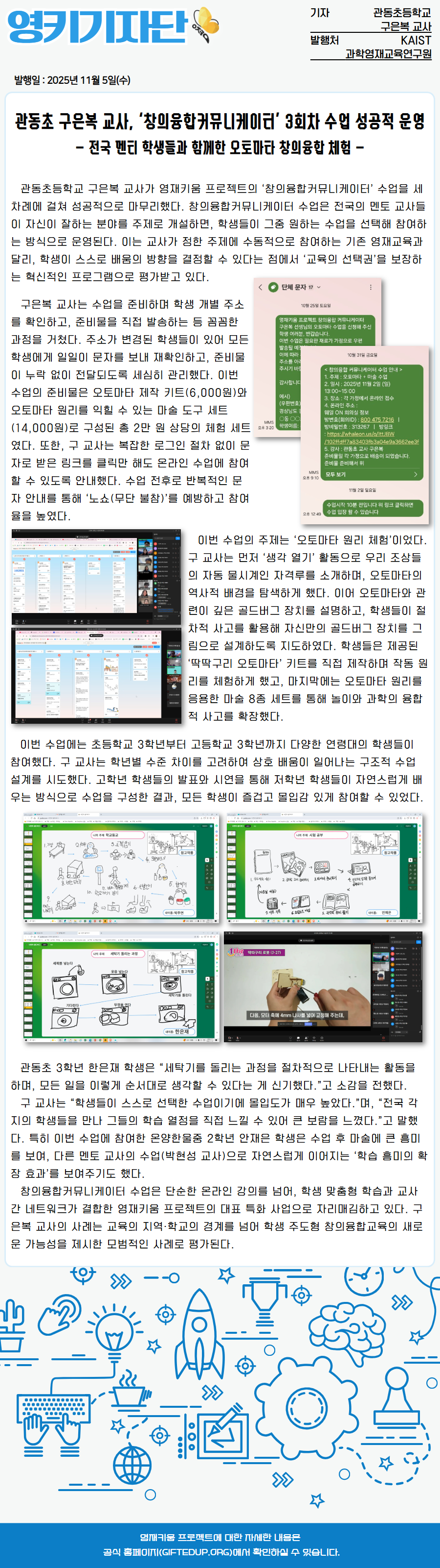 영키 기자단 기사(2025.11.05)_관동초 구은복 교사, '창의융합커뮤니케이터' 3회차 수업 성공적 운영_관동초 교사 구은복