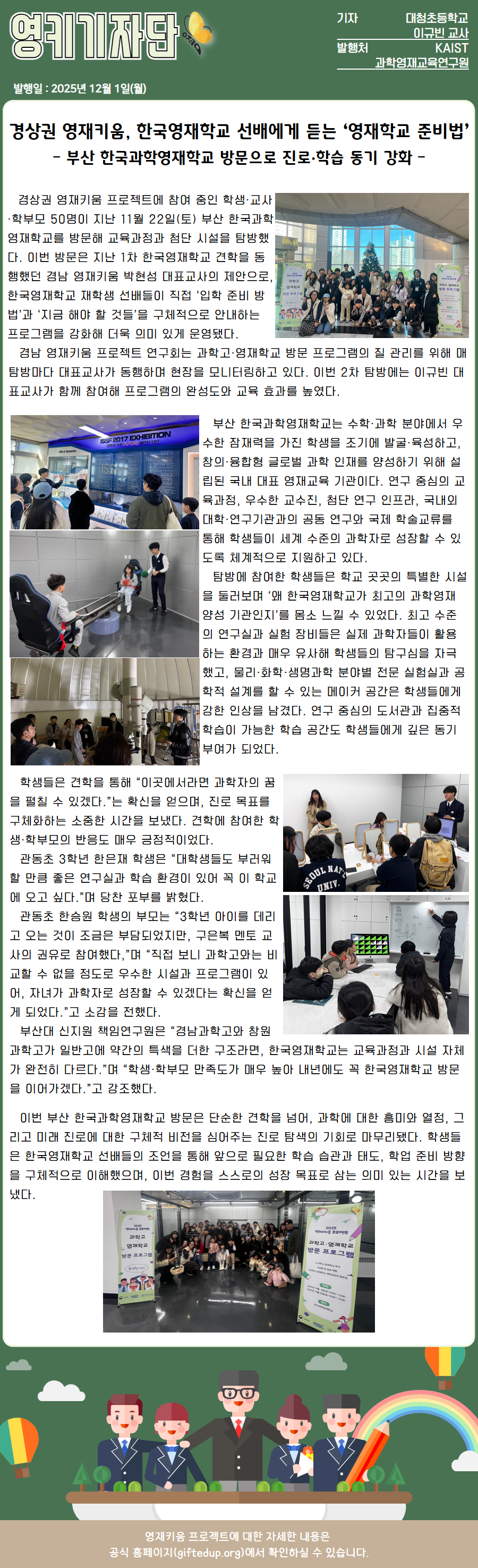영키 기자단 기사(2025.12.01)_경상권 영재키움, 한국영재학교 선배에게 듣는 '영재학교 준비법'_대청초 교사 이규빈