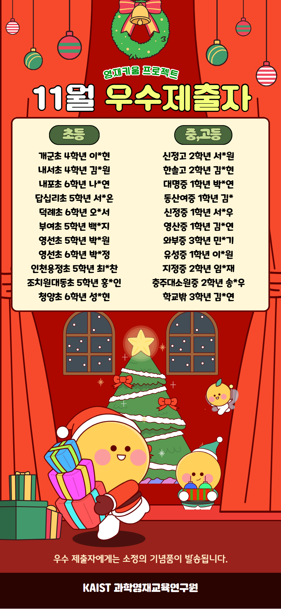 | 47 | 온라인학습 멘토링 | [2024-12] 12월 독서 프로그램 우수자 발표 | 카이스트 | 2025-01-22 | |