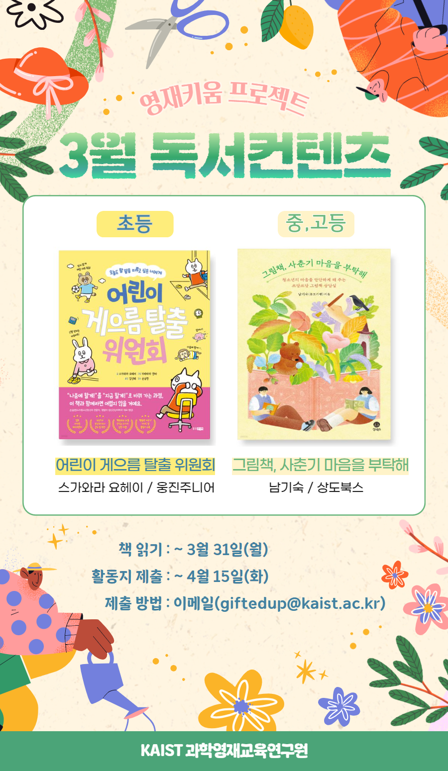 | 52 | 온라인학습 멘토링 | [2025-03] 3월 독서 프로그램 우수자 발표 | 카이스트 | 2025-04-21 | |